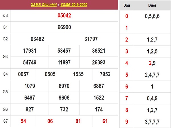 Từ bảng tổng hợp KQMB 20/9/2020 có thể phân tích XSMB hôm qua đã về như sau:
